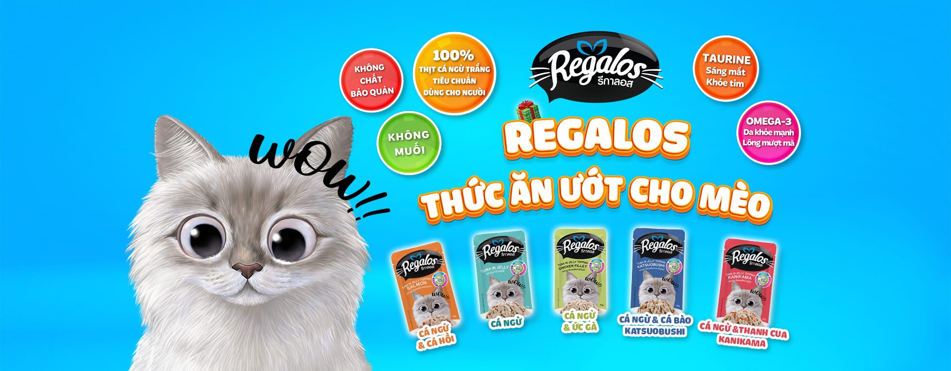 Regalos là dòng sản phẩm thức ăn ướt cho mèo của Pataya Food Group (Thái Lan). Mình đã giúp định hướng chiến dịch ra mắt thị trường Việt Nam vào năm 2021 của Regalos.