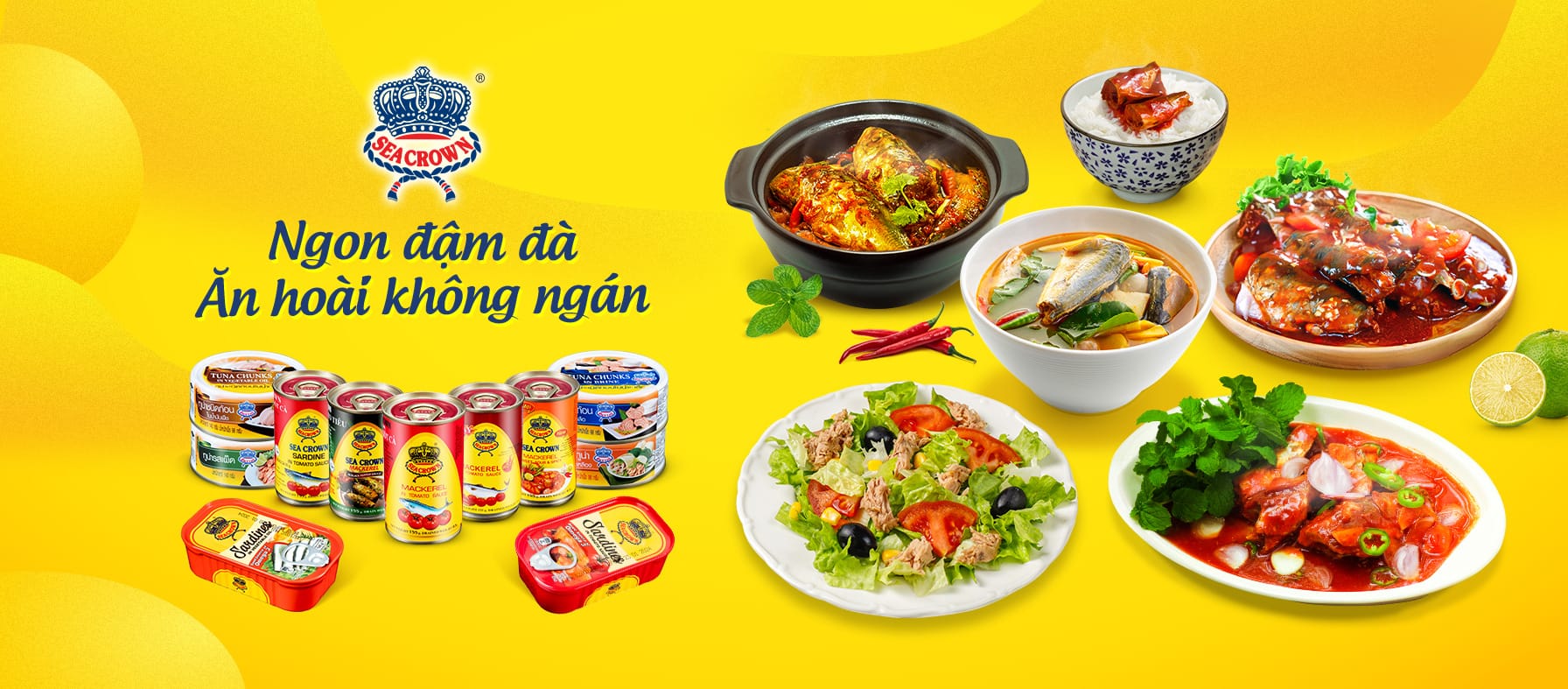 Sea Crown là dòng sản phẩm cá nục đóng hộp của Pataya Food Group (Thái Lan), bán chạy top 2 toàn ngành tại thị trường Việt Nam. Mình đảm nhiệm chiến dịch tăng nhận diện thương hiệu và kỷ niệm 19 năm ra mắt của Sea Crown vào năm 2022.